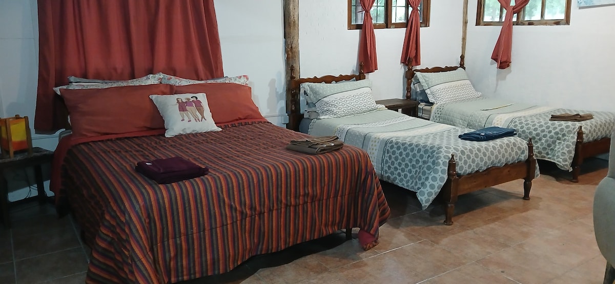 La Locanda dispose de quatre maisons réparties dans un jardin boisé. Chacune d'elles dispose d'une chambre, d'une salle de bain, d'une cuisine et d'un jardin d'hiver. Située dans un quartier calme, en face de la montagne de San Vicente et à quelques pâtés de maisons de la plage, qui est accessible en 10 min à pied. Les constructions sont artisanales réalisées par Adri et Tato dispose d'intérieurs en argile et de toits vivants, qui offrent à l'intérieur une bonne isolation thermique et de la chaleur. (À la place il y a 2 chiens, 3 chats)