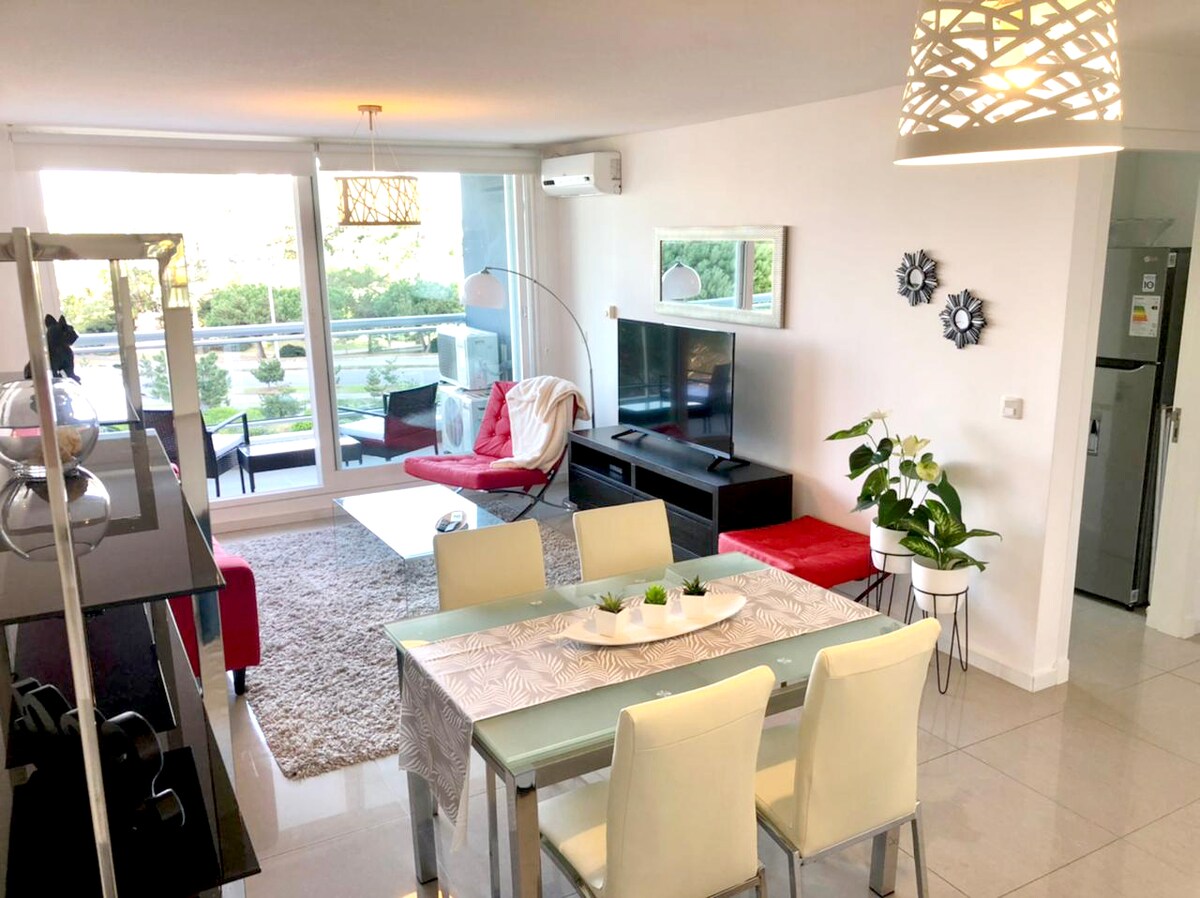 Profitez de votre séjour à Punta del Este un appartement tout neuf au 1er étage, avec vue sur la forêt et la piscine. Très lumineux, bâtiment idéalement situé, avec de multiples services, piscine chauffée, piscine ouverte, salle de gym, barbecue, terrain de gazon synthétique, microcinéma, salle pour enfants, adolescents et adultes, garage fermé propre, réception 24 heures, buanderie,wifi, équipé pour 4 personnes, linge de lit et serviettes de bain, air conditionné,2 smart tv 40 "
