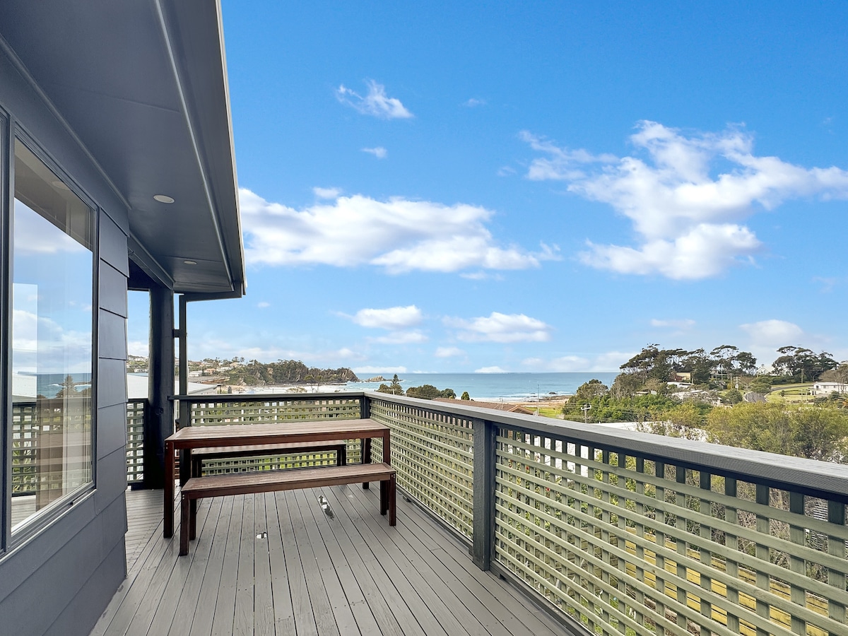 One of the best locations at Malua Bay with unbroken ocean views. Enjoy a stunning stay in spacious comfort and style which can accommodate up to 8 guests. Fabulous location all year round, a 1-2 minute ocean front walk to Garden Bay, a 5 minute walk to the popular Three66 café plus enjoy all that the south coast has to offer. Watch the whales from the front deck as they migrate north in the cooler months, and south with their calves as it starts to warm up towards summer.