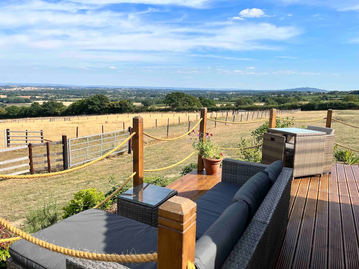 Profitez de l'intimité de votre propre luxueux pod Glamping, l'Otter Pod. Réveillez-vous et profitez des levers de soleil spectaculaires et des vues sur le paysage des collines de Malvern et profitez de votre bain à remous pour deux personnes. Tout simplement à couper le souffle ! L'Otter Pod est entièrement équipé et comprend un lit double, une salle de bain avec douche, une kitchenette et une télévision Freeview. Super pubs locaux. Situé sur son propre terrain d'un acre qui est clôturé et fermé. Hillcot est un centre équestre en activité, donc il y a beaucoup de chevaux et nos moutons mignons et amicaux.