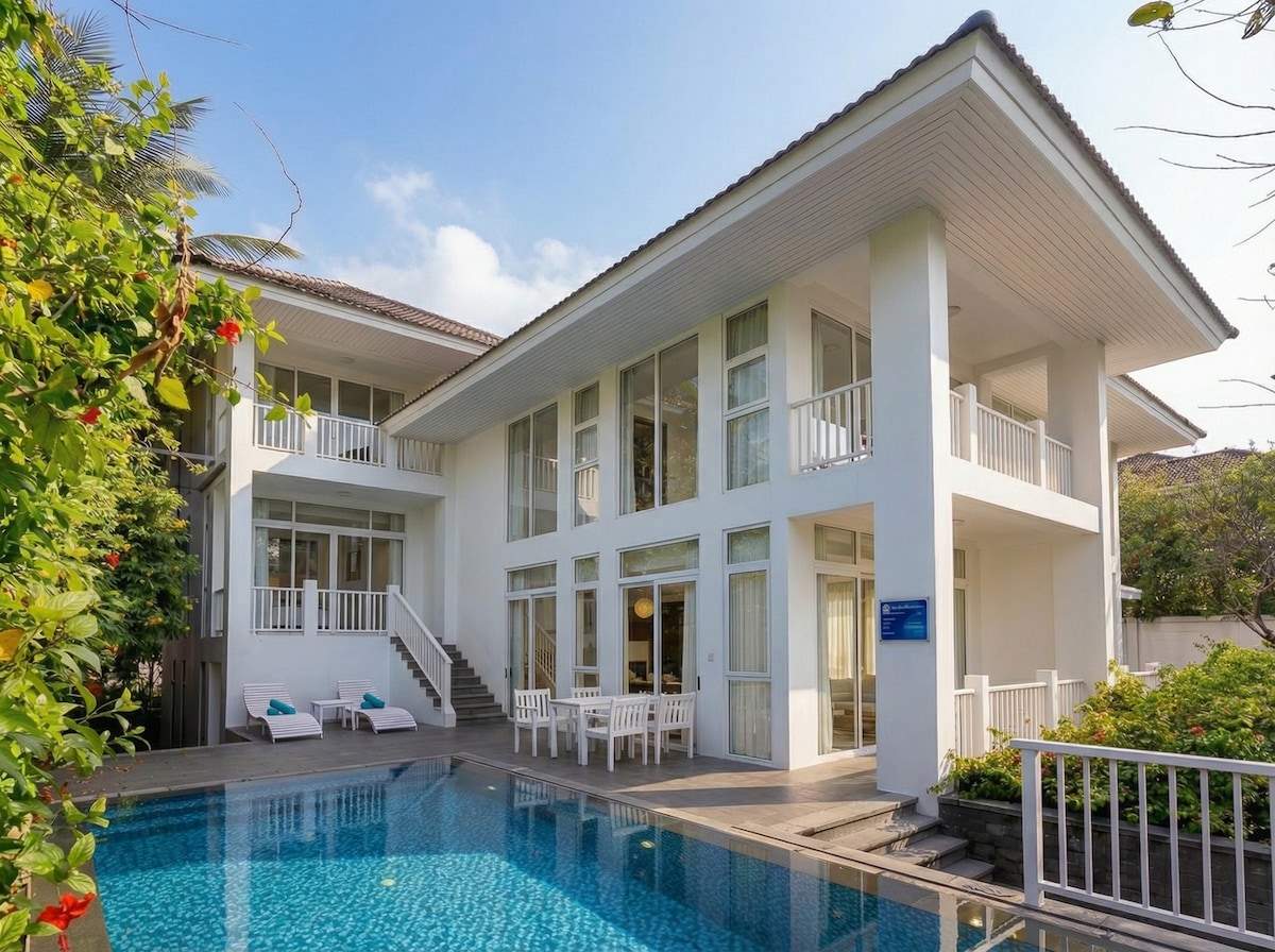 Villa moderne de 4 chambres avec une GRANDE PISCINE PRIVÉE dans le Premier Resort, l'un des complexes balnéaires les plus connus de Đà Nẵng, situé juste à côté de la plage de My Khe. Parfait pour les familles et les groupes, avec des chambres spacieuses, des salles de bains privatives, un ENTRETIEN QUOTIDIEN et un accès facile à la plage, à l'aéroport, aux restaurants et aux attractions locales. Veuillez noter que les équipements communs du complexe hôtelier du Premier (y compris la piscine principale et d’autres équipements communs) sont actuellement fermés temporairement pour maintenance.