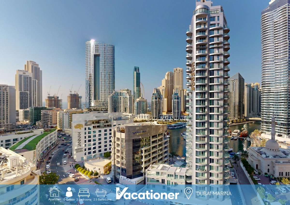 Votre famille passera une escapade parfaite dans cet incroyable appartement de trois chambres situé dans la scintillante marina de Dubaï. La promenade de la marina est à votre porte pour profiter du cadre magnifique et elle se trouve à seulement quelques minutes des attractions passionnantes de Dubaï, comme le célèbre Palm Jumeirah et la plage JBR, avec de nombreuses options de restauration et de vente au détail haut de gamme. Les vacanciers peuvent voyager un peu plus loin pour découvrir l'emblématique Burj Khalifa et le Dubai Mall dans le centre-ville de Dubaï. Les options sont infinies !
