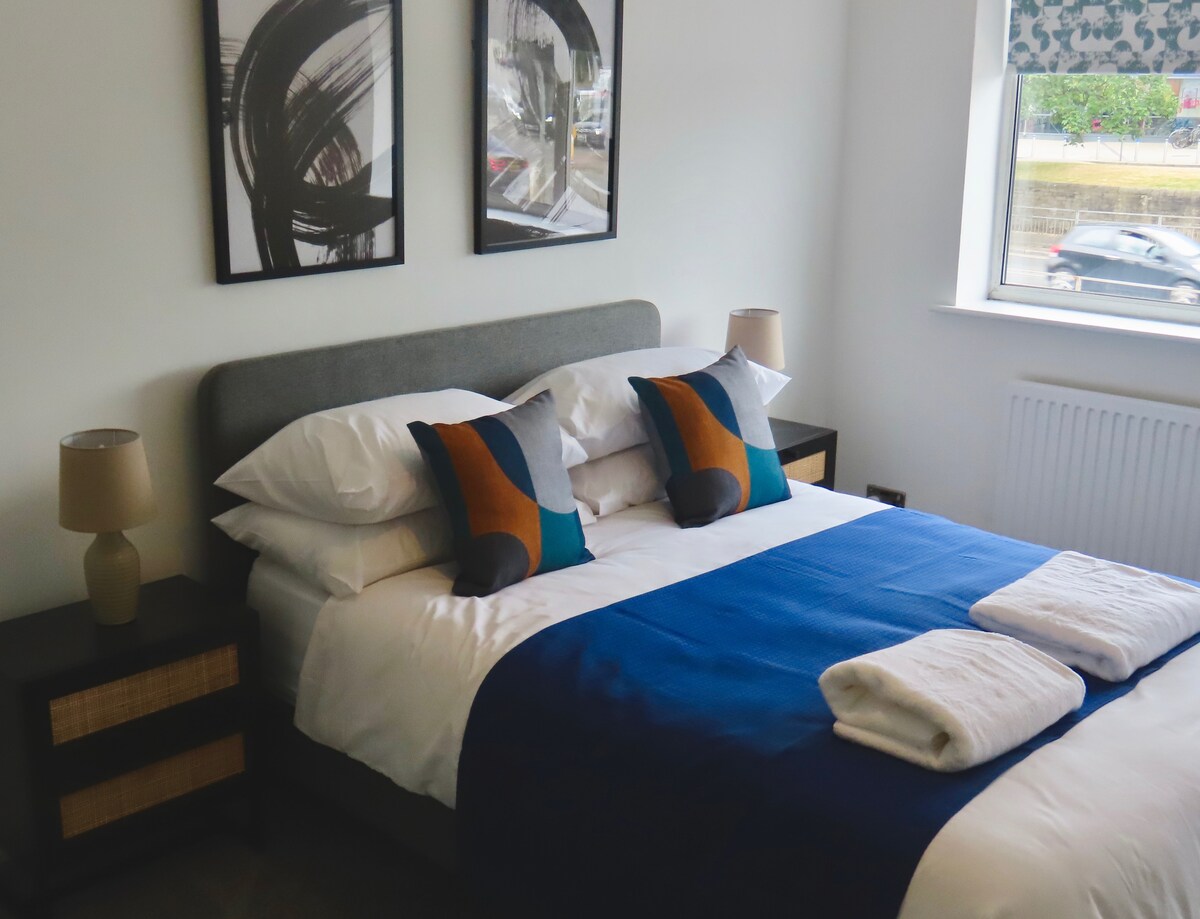 Appartement de luxe de 2 chambres avec vue imprenable sur l'eau🌊. Peut accueillir jusqu'à 5 personnes avec 2 lits doubles et un lit pliant disponible sur demande. Profitez d'un salon spacieux et ouvert, d'une cuisine entièrement équipée, de 2 salles de bain modernes et d'un balcon privé. Idéal pour familles, amis ou séjours d'affaires. Wi-Fi rapide, draps propres, serviettes et tous les éléments essentiels fournis pour un séjour confortable et relaxant dans un emplacement privilégié. Parking payant abordable 🅿️ pour seulement 6 £ pour 24 heures/10 £ pour 48 heures.