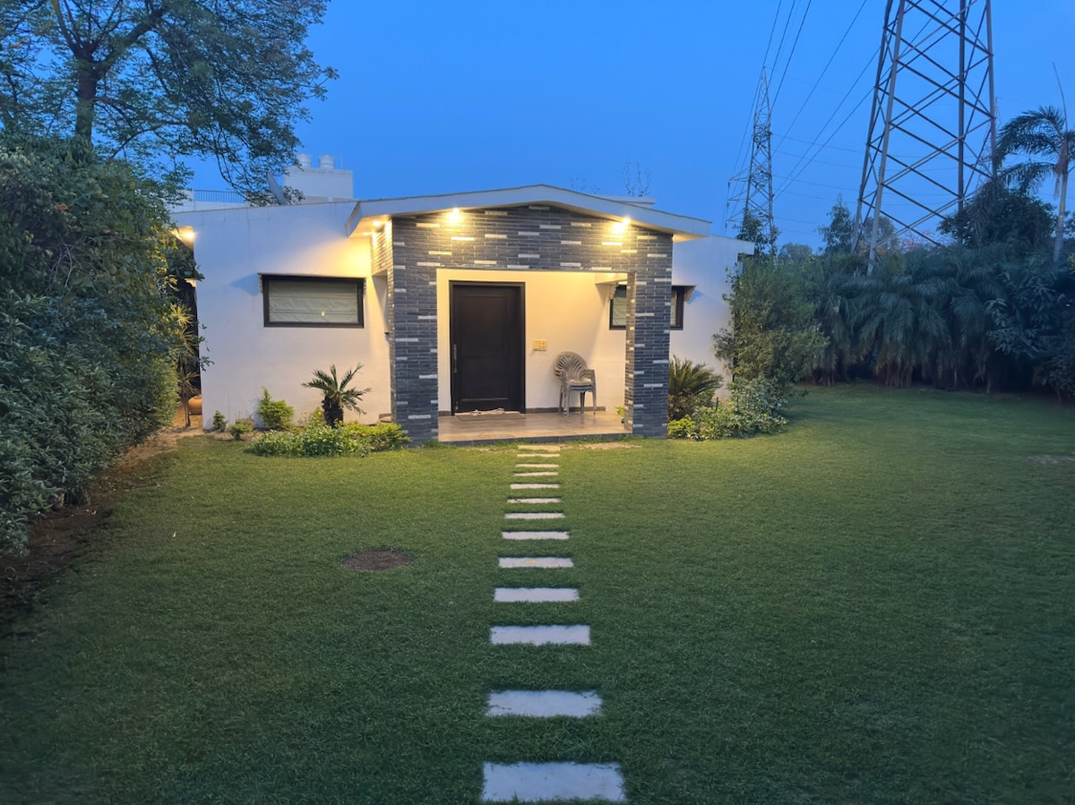 La grange Cette ferme moderne de 5000 pieds carrés, 4 chambres/5 salles de bain est la propriété la plus unique dans laquelle vous séjournerez au Pendjab. Surplombant un magnifique verger, lisez un livre, écoutez les oiseaux qui chantent, réchauffez-vous à côté d'une cheminée tout en savourant un délicieux repas barbecue, vous aurez l'embarras du choix.. ! Séjournez et célébrez ici les occasions les plus joyeuses avec vos proches. Vous ne trouverez pas d'endroit plus serein et luxueux… !!