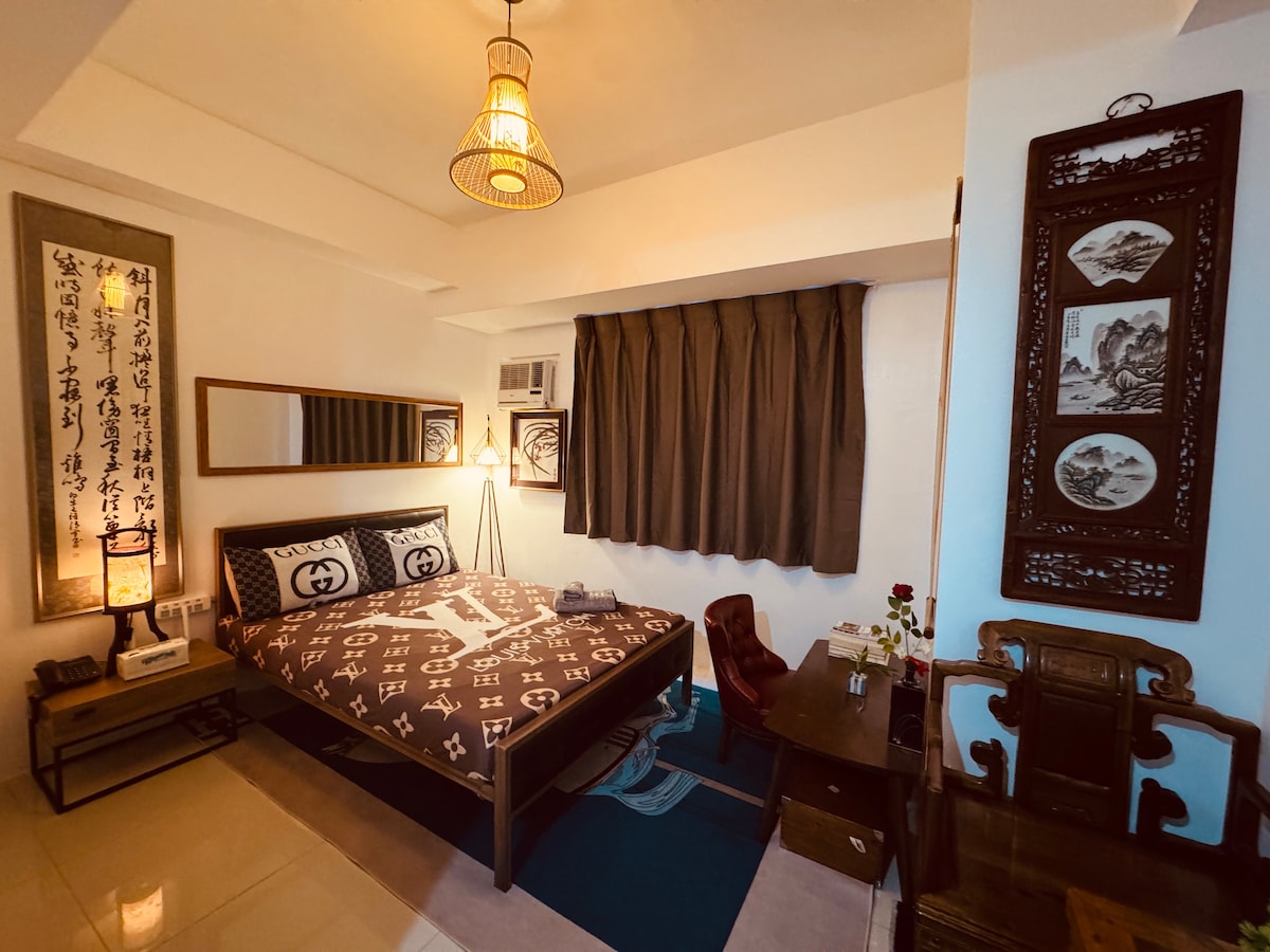 Thoughtfully designed with a modern touch, this cozy 43rd-floor studio offers comfort and convenience for travelers, couples, or remote workers. Enjoy peaceful mornings and restful nights above the city skyline. • Comfy queen bed with fresh linens • Equipped with iron and hair dryer for your convenience • Clean and cozy space for a relaxing stay • Near Robinsons Place, Intramuros, and Luneta Park • Located right across the U.S. Embassy Manila