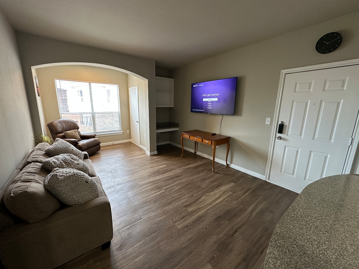 Découvrez l'incarnation de la vie moderne dans notre appartement magnifiquement conçu d'une chambre ! Cette superbe maison offre un mélange harmonieux de luxe et de commodité, avec : * Salon spacieux * Plan d'étage ouvert * Internet Google Fiber/WiFi * Télévision connectée 65"* Cuisine spacieuse * Appareils en acier inoxydable * Grand lit Queen Size confortable *Grand placard à l'italienne * Lave-linge et sèche-linge à l'intérieur de l'appartement * Centre de remise en forme 24h/24 * Piscine de style complexe hôtelier Et bien plus encore ! Mélange parfait de luxe, de confort et de commodité !