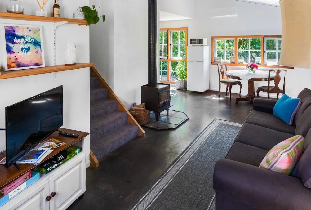Confortable et agréable. Séjournez dans ce magnifique bungalow avec une vue imprenable sur le mont Buller. Il est à quelques pas de la rue principale de Mansfield avec de nombreux cafés, pubs, restaurants et magasins. Mon mari et moi vivons sur la propriété dans la maison principale et pouvons vous aider si nécessaire, mais sinon vous serez laissés seuls pour profiter de la vue et du foyer avec une boisson chaude ou froide de votre choix. Nous fournissons des produits pour le petit déjeuner, du lait, du thé et du café.
