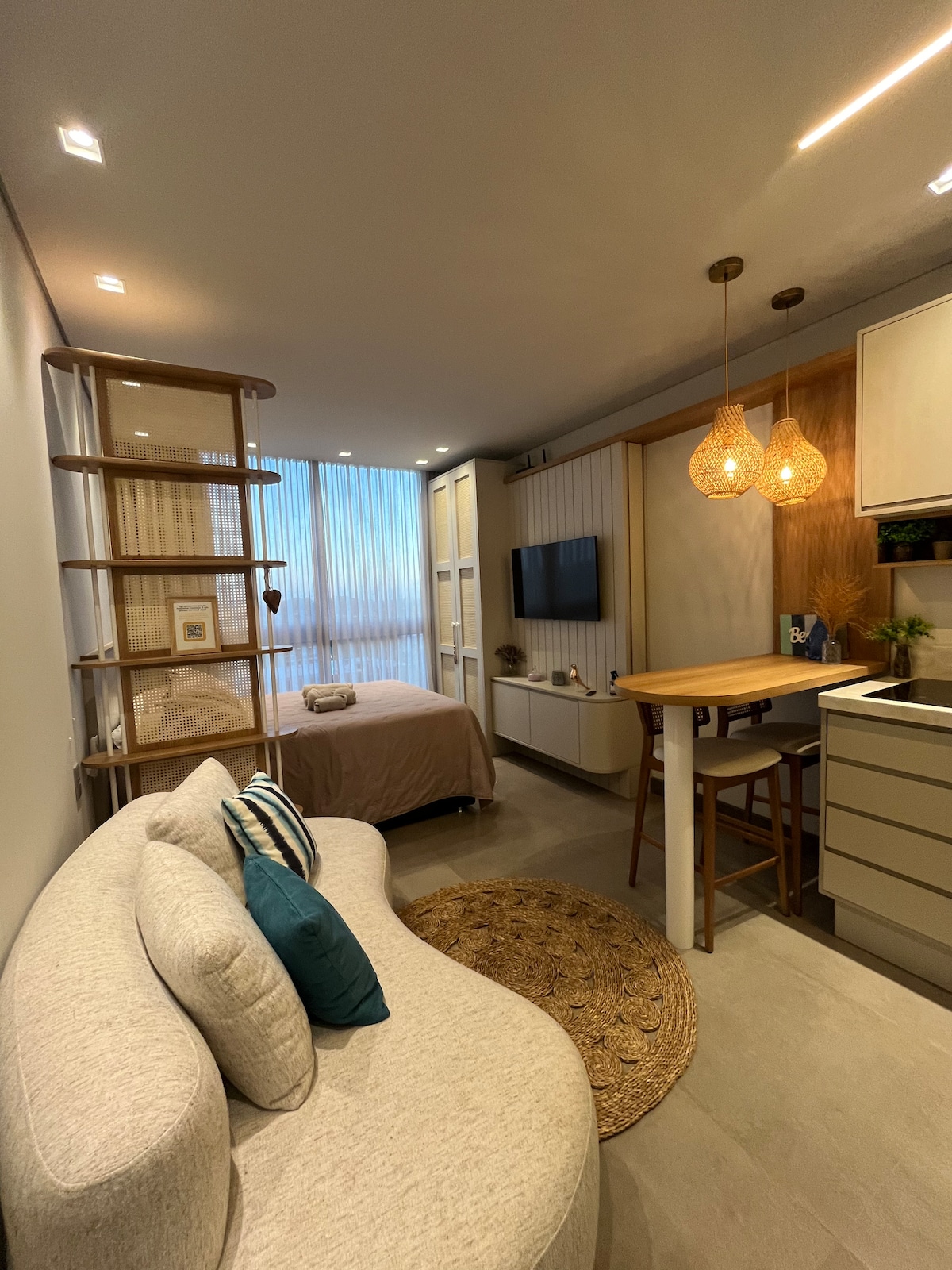 **Réveillon mínimo 6 dias. Loft belíssimo, alto padrão completamente mobiliado, climatizado, bem iluminado e ventilado, novo, com 1 vaga de garagem, em empreendimento de alto padrão entregue recentemente, possui cama casal queen, sofá com cheise, a 250metros da praia, meia quadra da Av Ubirajara e uma quadra da Av Paraguaçu, em localização nobrissima da praia. ANO NOVO MÍNIMO - 6 DIÁRIAS A locação é para 3 pessoas. Pessoa adicional é cobrado um valor adicional.