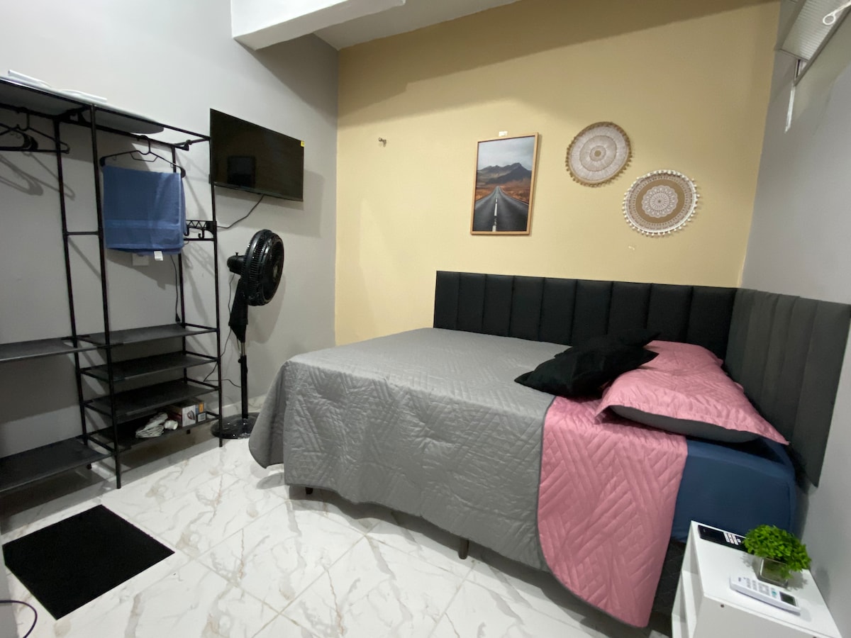 Ce studio a été conçu pour ceux qui recherchent praticité et confort dans un espace compact et bien aménagé. Le tout dans un environnement propre, organisé, calme et bien éclairé, idéal pour se détendre après une journée en ville. emplacement privilégié, en plein centre-ville ! À proximité de tout ce dont vous avez besoin tous les jours. Supermarchés, places, blanchisseries, églises, banques, magasins, commerce, foires, Hangar (centre de congrès). Vous pouvez y aller à pied ou en 5 à 7 minutes en Uber.