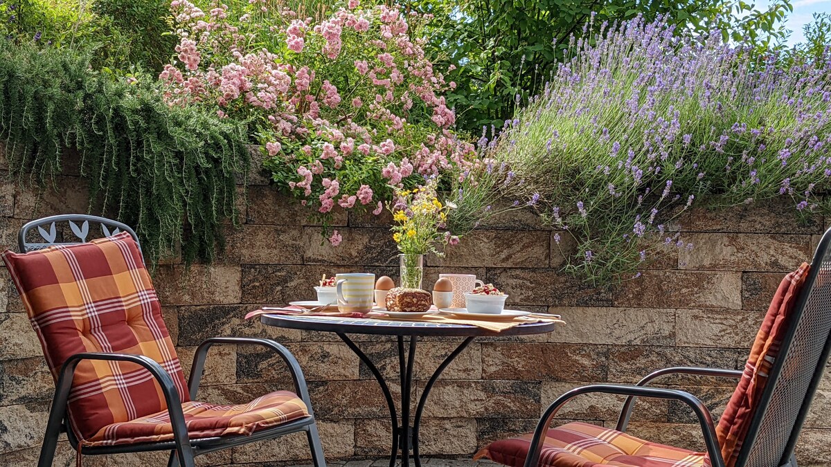 Embarquez à l'abri d'un mur vieux de 500 ans et profitez de l'atmosphère particulière des siècles passés dans une ambiance moderne de l'ancien presbytère. Nous vous proposons un appartement neuf de 90 m ² pour 2-4 personnes (autres personnes sur demande) avec deux chambres confortables, un grand espace de vie avec poêle, cuisine moderne et salle de bains, ainsi qu'un espace de loisirs attrayant avec jardin, barbecue et cave voûtée.