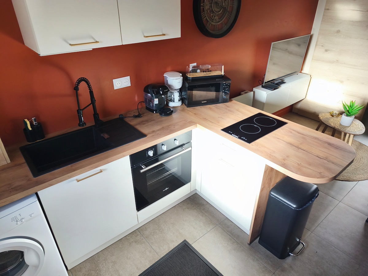 Détendez-vous dans ce logement privé situé dans un environnement très calme 🌳 ; - Chambre pour 2 personnes avec terrasse à l'étage. - Salle de bains avec douche. - Pièce de vie lumineuse avec cuisine entièrement équipée. - Salon avec télévision et canapé électrique. Côté extérieur, profitez d'un paysage magnifique à la campagne ainsi que d'une place de parking privé. - À proximité des axes autoroutiers. - 15mn de la Citée Europe. - 10" du lac d'Ardres. - 15" de la plage et du port de Calais.