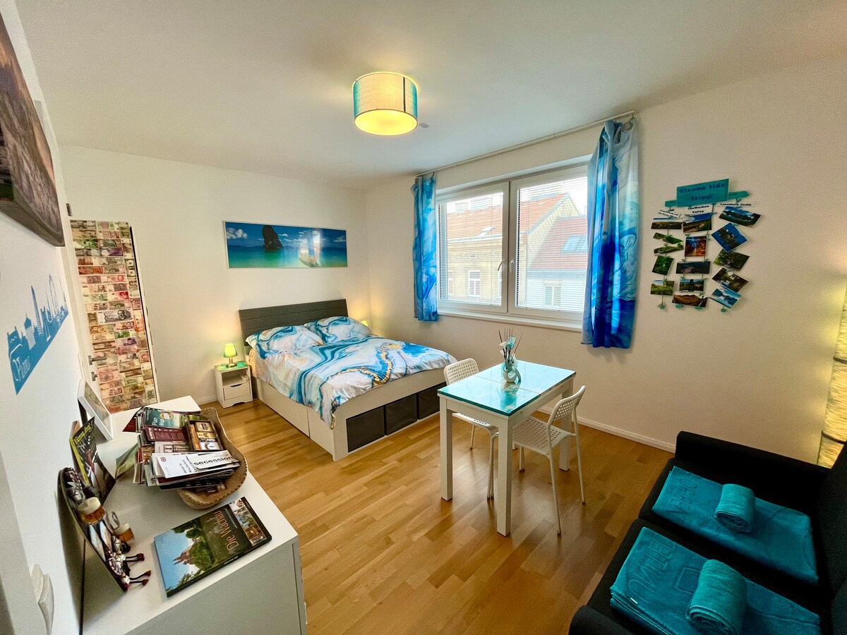 Nous louons un charmant appartement ancien au cœur de Vienne. L'appartement récemment rénové est situé au rez-de-chaussée, n'est pas visible du côté de la rue, en outre, toutes les fenêtres ont été équipées d'une protection anti-effraction. L'appartement est situé au centre mais dans une rue calme non loin du célèbre marché viennois de Naschmarkt. Les 45 m2 se composent d'un salon-chambre à coucher, d'une petite cuisine avec coin repas, d'une salle de bain avec douche et de toilettes séparées.