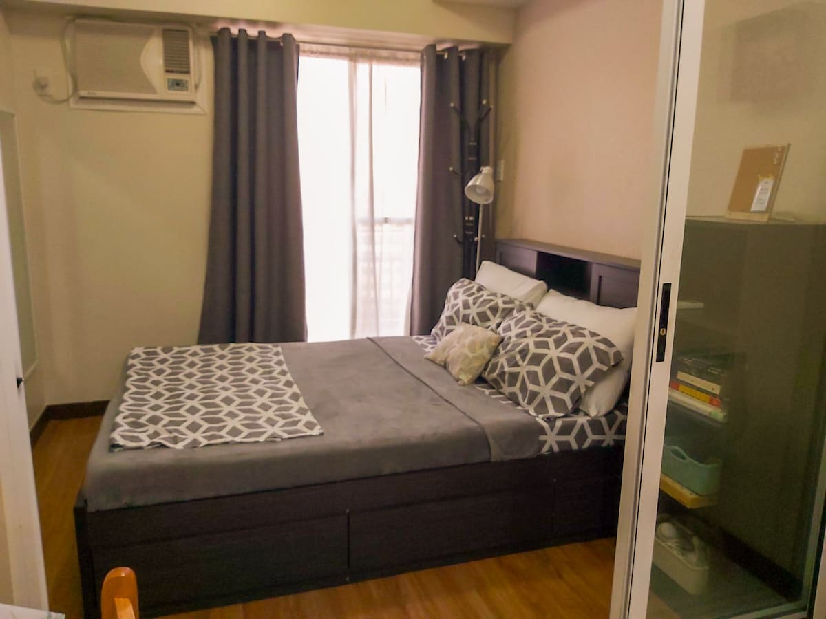 Adresse : Three Manhattan Parkview, General Malvar Avenue, Cubao, Quezon City, Grand Manille 1109, Philippines Peut accueillir 2 à 3 personnes, situé au 20e étage, accessible par 3 ascenseurs à grande vitesse, chambre avec salle de bain privative, cuisine ouverte, coin repas, Wi-Fi. Pour des raisons de sécurité, tous les voyageurs sont tenus de fournir une copie d'une pièce d'identité avec photo émise par le gouvernement et un dossier de vaccination contre la COVID, qui seront soumis à l'administration de la copropriété pour obtenir l'autorisation de rester dans le complexe.
