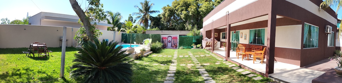 🏠 Maison de plage super confortable équipée de tous les ustensiles nécessaires pour votre séjour. ❄️ 4 chambres (toutes climatisées). 🍺 Barbecue à l'ombre, attenant à la piscine, avec congélateur et télévision intelligente 50" 🚽 Toilette à l'extérieur. 🪴 Wi-Fi 100MB 🏖 À 500 mètres de la plage et des commerces en général. 🐶 Nous sommes pet friendly - 🚘 Parking pour jusqu'à 6 voitures. 🚨 AVIS IMPORTANT Pour les réservations jusqu'à 6 personnes, la plus petite chambre sera maintenue fermée (2 chambres plus la suite seront disponibles)