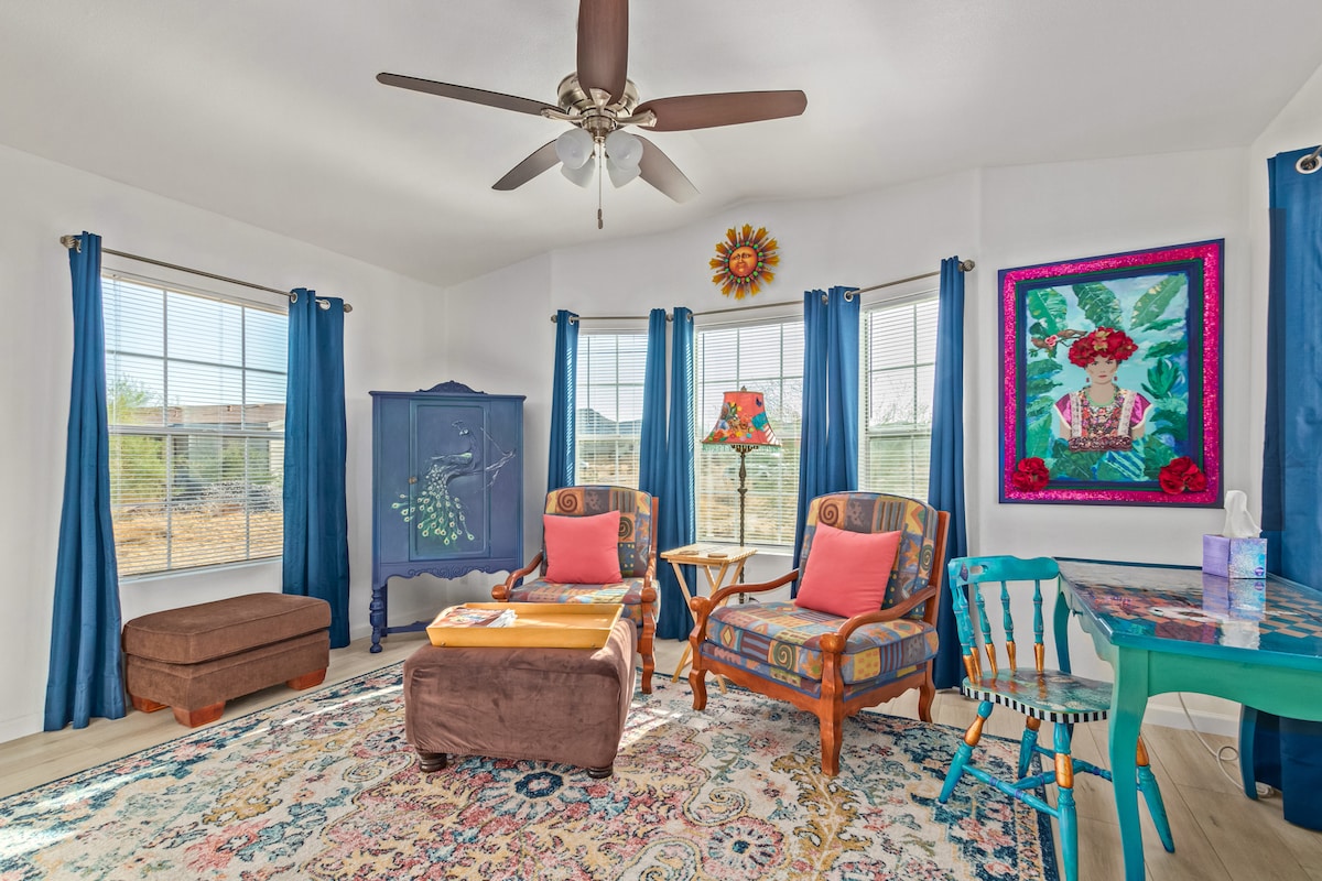 Come out to the desert. Stunning sunsets, Native Cactus, Bird watching, Walking. Many activities nearby like Skydiving, APEX car racing, Arizona Soaring nations leading provider of Glider training and rides .Features Open Concept livingt.Enjoy relaxing mountain views. Rural area. Closest house is 75 feet away on the same property. Owners are next door. ABSOLUTLEY no burning of candles or incense, no vaping, no smoking of any kind, no drugs. All violators will be asked to leave and reported.