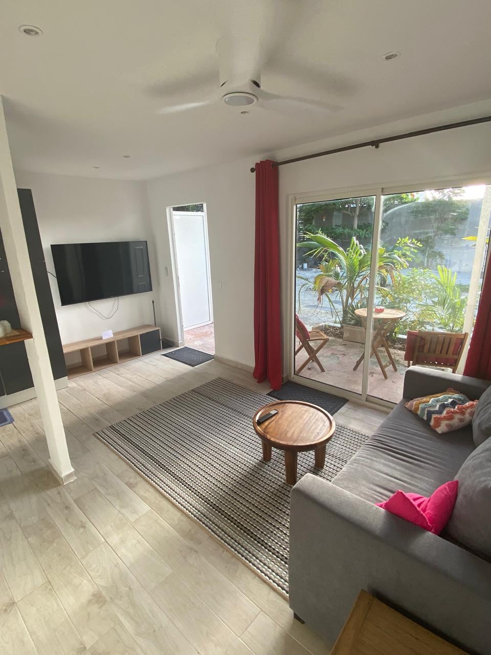 Grand studio de qualité, spacieux et lumineux, tout confort et équipé avec salle de bain privée. • Décoration cosy et tropicale réalisée avec goût • Propreté assurée • Piscine collective • Climatisé • Lit King Size • WiFi&TV • Cuisine équipée. • En rez de chaussée avec jardin et terrasse couverte. • Emplacement privilégié dans une résidence calme et verdoyante, idéalement située. Proche de la marina, du centre ville, des commerces, des restaurants, de la gare maritime, de la promenade….