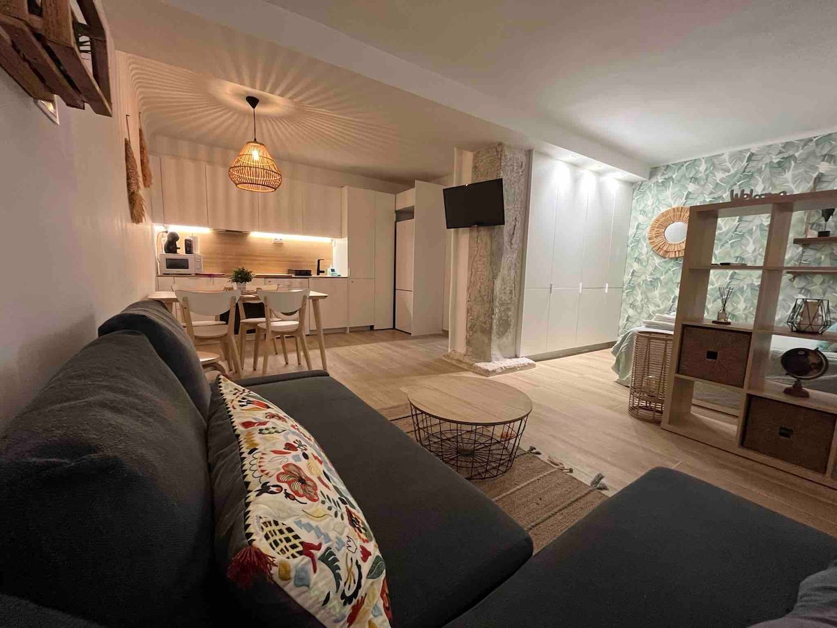 Wonderful Loft (40mts) in front of the beach. Really nice views. Specially for couples (cozy and romantic). Unly room for Bed , dining room kitchen and balcony. Very pleasant. Until 4 people. Free private comunitary parking. Train line conection at 150 mts to all the coast . Nautical Activities. Montains towns less than 40 minutes driving. Wifi service. . FULLY RENOVATED AND FURNISHED