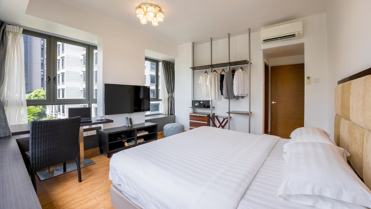 Le logement idéal pour les voyageurs d'affaires et de loisirs à la recherche de confort et de commodité. Reposez-vous dans votre chambre luxuriante mais fonctionnelle avec un lit king-size et une table de travail. Meublé avec des équipements élégants et une couette moelleuse, créez un séjour mémorable et agréable dans notre Studio Deluxe Apartment. À 3 à 5 minutes à pied de Bras Basah, Cityhall & Bugis MRT. *Parfait pour le Work-From-Home avec Internet haut débit *