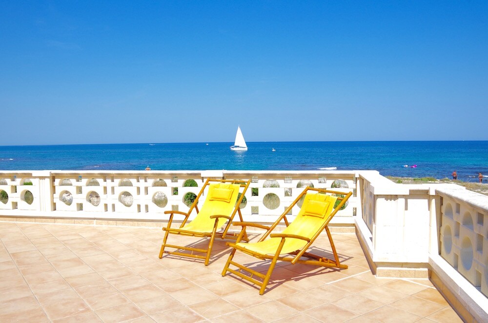 Incroyable villa construite en 1925 à Villanova, station balnéaire d'Ostuni (Pouilles), un emplacement charmant à seulement 10 mètres de la mer. En face, il y a une petite plage rocheuse isolée et calme, entourée de rochers et de buissons méditerranéens, à partir de laquelle vous pouvez nager. Chaque chambre a une fenêtre ou une porte directement sur la mer. La maison est confortable, une vue qui s'étend entre la mer et le vert du jardin. Beau salon avec cheminée et vue sur la mer. Jardin, patio, terrasse.