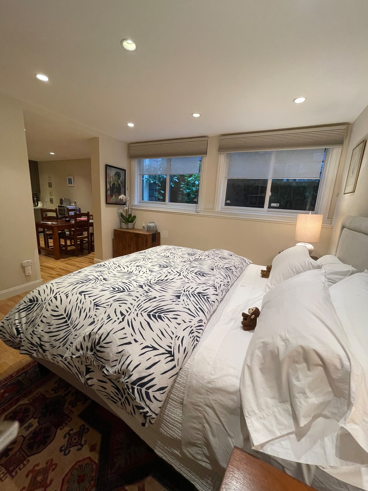 Notre grande suite Garden avec entrée privée et une chambre est spacieuse et calme. Situé dans notre maison familiale à Presidio Heights, vous avez un accès pratique au Presidio, à ses kilomètres de sentiers de randonnée, à ses activités, à ses bureaux VC et technologiques. Nous sommes à quelques minutes à pied ou en voiture de n'importe où ailleurs dans la ville. Explorez les restaurants étoilés au Michelin, les cafés, les quartiers animés de Clement Street et NOPA, le Presidio Tunnel Tops — ou détendez-vous sur le patio et lisez un livre. Remarque : il n'y a pas de cuisinière ni de four.