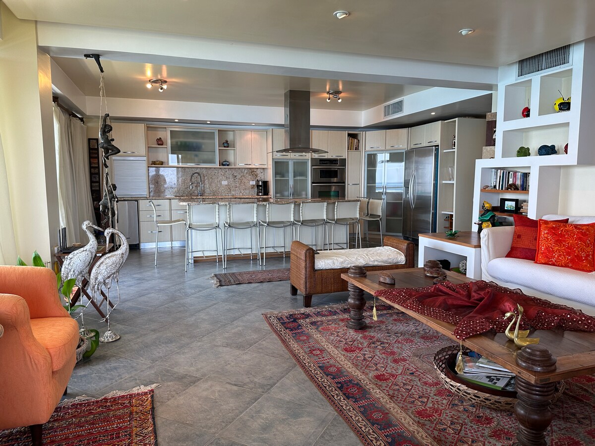 Réveillez-vous avec une vue panoramique sur la baie des Caraïbes à El Morro ! 3 chambres avec salles de bains privées, grand balcon pour les couchers de soleil et cocktails, 2 piscines, jardins, sécurité 24h/24 et 2 places de parking privées couvertes. À quelques pas de l'hôtel Wyndham, des clubs de plage, des restaurants et des sports nautiques. Playa Concorde, Laguna El Morro et La Caracola Beach à proximité. Confort, style et ambiance tropical pour 8 personnes, eau 24h/24 et 7j/7 dans l'appartement et alimentation de secours pour l'immeuble uniquement. Oasis exclusive pour des souvenirs inoubliables des Caraïbes !