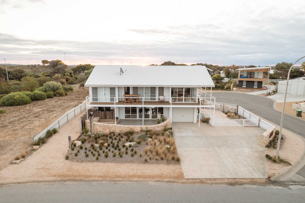 Situé à seulement 2,5 heures en voiture d'Adélaïde. Sand 'n Sea est en retrait de l'Esplanade dans un cadre naturel plus calme. La maison est entièrement indépendante sur un terrain clôturé de 1/2 acre, à seulement quelques minutes à pied de la plage de marée pour la baignade, la plongée avec tuba, la pêche et la fossilisation. Les caractéristiques comprennent 3 chambres, un grand salon/salle à manger ouvert, une cuisine bien équipée, une climatisation à air pulsé, 2 téléviseurs et lecteurs DVD, un espace barbecue ombragé, une terrasse couverte et un grand parking pour les bateaux.