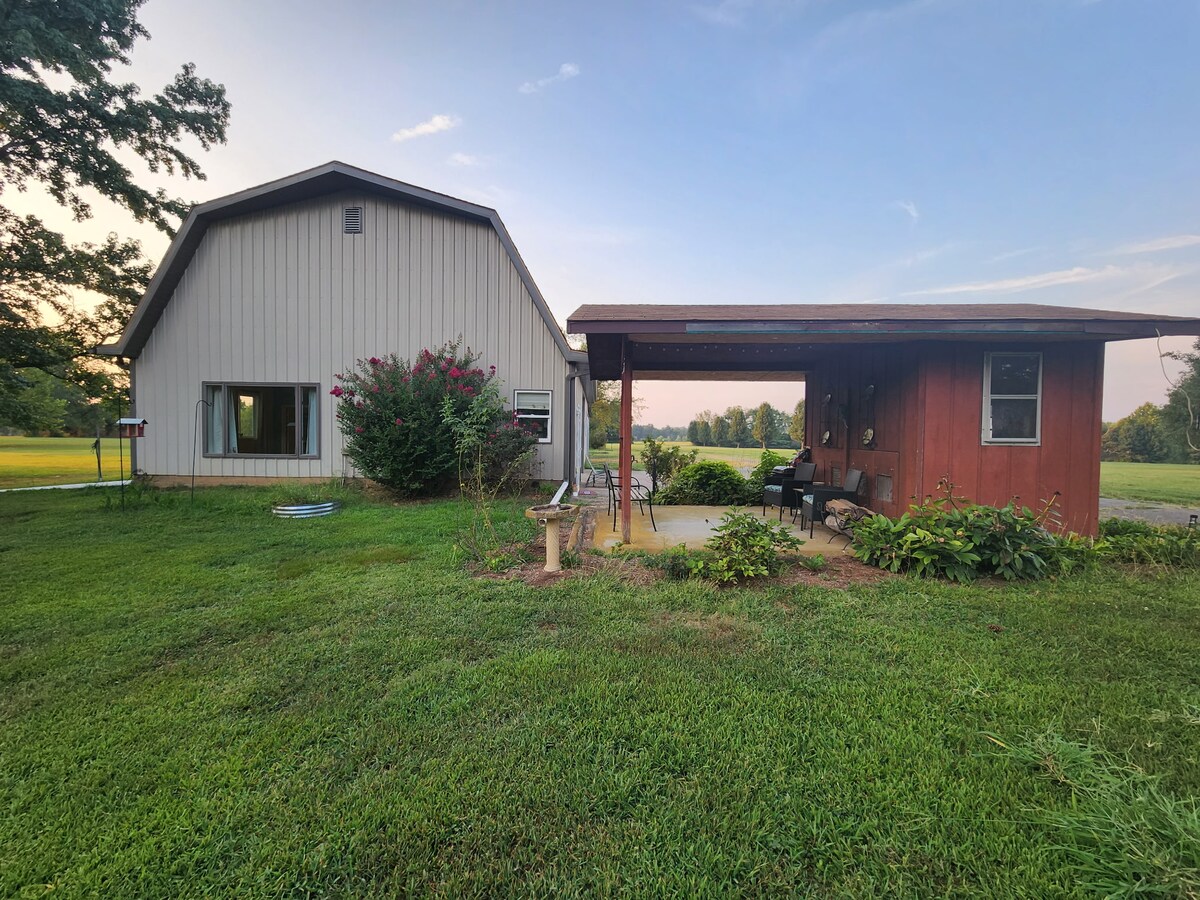 Profitez de la vie à la ferme dans cet adorable chalet de 375 pieds carrés. Doté de tout ce dont vous avez besoin, ce petit chalet est niché en toute intimité derrière des arbres sur notre ferme de 11 acres. Vous oublierez bientôt à quel point vous êtes proche de la ville avec la belle vue depuis vos fenêtres et la clôture du pâturage à quelques pas de la porte arrière. Que vous soyez ici pour les vignobles, les randonnées incroyables, un événement SIU (3 miles) ou pour rendre visite à votre famille, le Homestead Cottage vous offrira un refuge confortable après toute aventure.