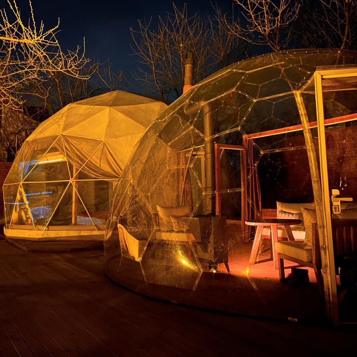 Détendez-vous dans cet espace calme et élégant. Elle dispose d'une grande zone d'utilisation très différente des maisons dôme standard, d'une piscine, isolée, climatisée, d'une cuisinière, d'une cheminée, d'un purificateur d'air, d'un jacuzzi, d'un jardin indépendant 100 % abrité, d'un barbecue et d'une projection. Dans notre maison, qui est en contact avec la nature, vous pouvez allumer votre cheminée et profiter de la projection depuis l'écran devant vous pendant que vous êtes dans votre jacuzzi. Agu Nature pour des vacances d'hiver agréables, confortables et confortables