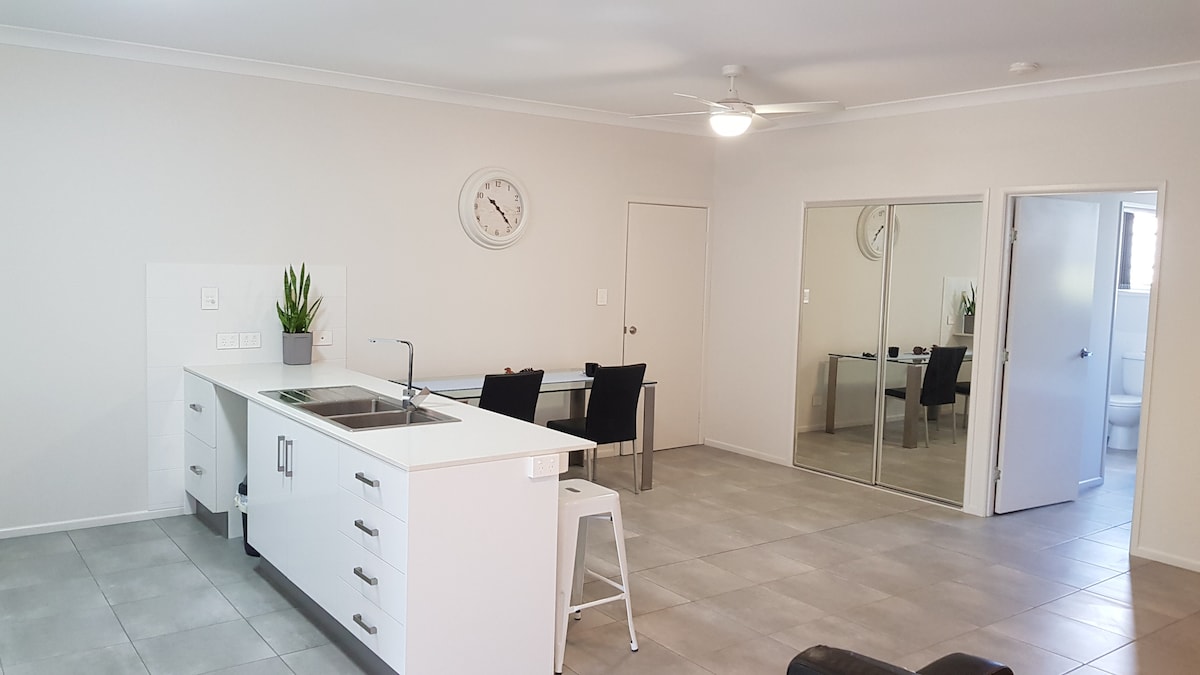 Spacieux appartement au rez-de-chaussée dans un petit complexe résidentiel calme à Picnic Point Esplanade. Profitez de la vue sur l'eau depuis votre grande cuisine spacieuse, votre salon et vos chambres, parfait pour vous détendre pendant vos vacances. Profitez de la baignade avec la plage juste en face ou dans la piscine du complexe. WiFi/Netflix illimité. Accès aux paddles. Système de chauffage/climatisation split dans la chambre principale et les salons. Garage à distance avec accès direct à l'unité. Abondance d'options de restauration/shopping, toutes accessibles à pied.