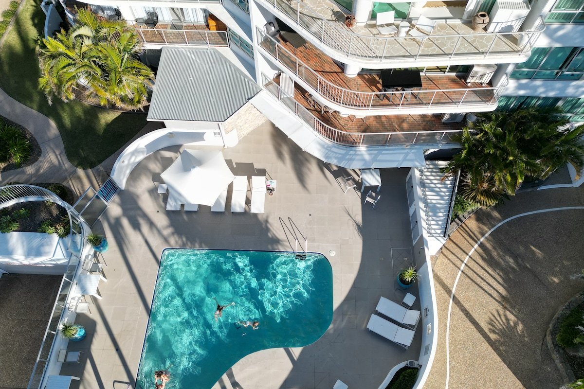 « The View at Alex » Magnifique appartement indépendant en bord de mer avec une vue imprenable sur la plage d'Alexandra. Profitez de beaux levers de soleil et promenades le long de la plage immaculée jusqu'à Alex dans une direction et Mooloolaba dans l'autre. Il y a une multitude de restaurants et de cafés à quelques minutes à pied de chez vous. Le logement est situé au 3e étage avec une belle vue. Détendez-vous au bord de la piscine, plongez dans le spa ou asseyez-vous sur la véranda avec vue sur l'océan. Rien ne vaut ça !
