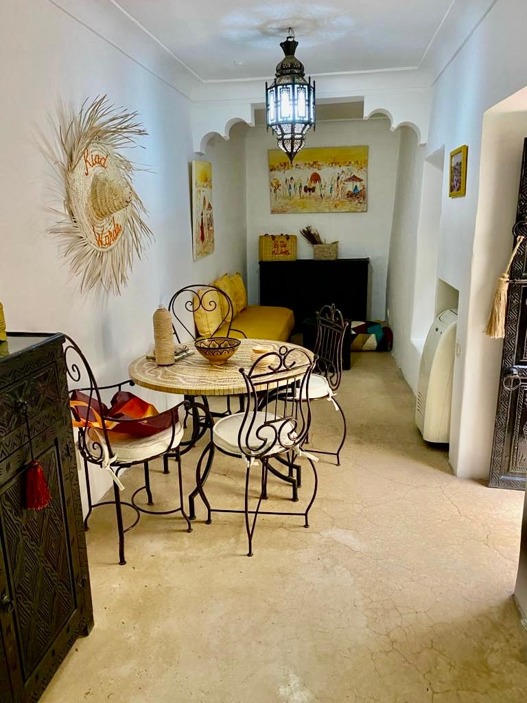 Bienvenus au riad CHALYIA. Un lieu paisible où vous vous sentirez chez vous. Le riad est au cœur de la medina , proche de la frénésie de la place principale mais dans une rue calme et douce. Il possède 3 chambres avec salle de bain privée. Un salon salle à manger en intérieur et un salon extérieur ainsi qu une cuisine équipée. Sur la terrasse vous pourrez profiter du soleil d’ un bel espace détente et d’une petite piscine. Le riad possède une deuxième terrasse pour admirer les couchers de soleil