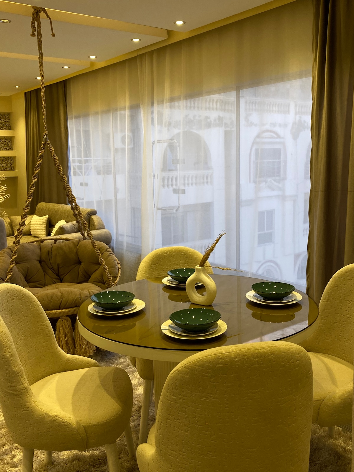Maison chaleureuse et ensoleillée, au charme vintage et au confort moderne. Cet appartement dispose d'un salon lumineux, d'une cuisine ouverte et d'un coin repas confortable, tous décorés avec des touches méditerranéennes. Cet endroit spécial est proche de tout dans le centre-ville d'Alexandrie, ce qui facilite la planification de votre visite.