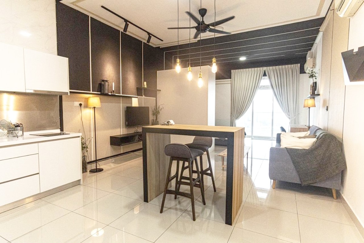 Cozy Apartment in Midas Seri Alam. Stylish & Comfortable 1-Bedroom with premium quality Queen size bed and 1 unit Sofa bed. 1 - 3 pax Perfect for Couples, Families or Solo Travelers - 1KM to Pasir Gudang Highway - 3KM to Regency Specialist Hospital - 4KM to Mydin/ Lotus - 4KM to Today's Market - 8KM to MMHE/Johor Port - 10KM to IKEA/ Toppen/ Aeon Tebrau city - 12KM to Mid Valley Southkey - 15KM to JB CIQ Custom