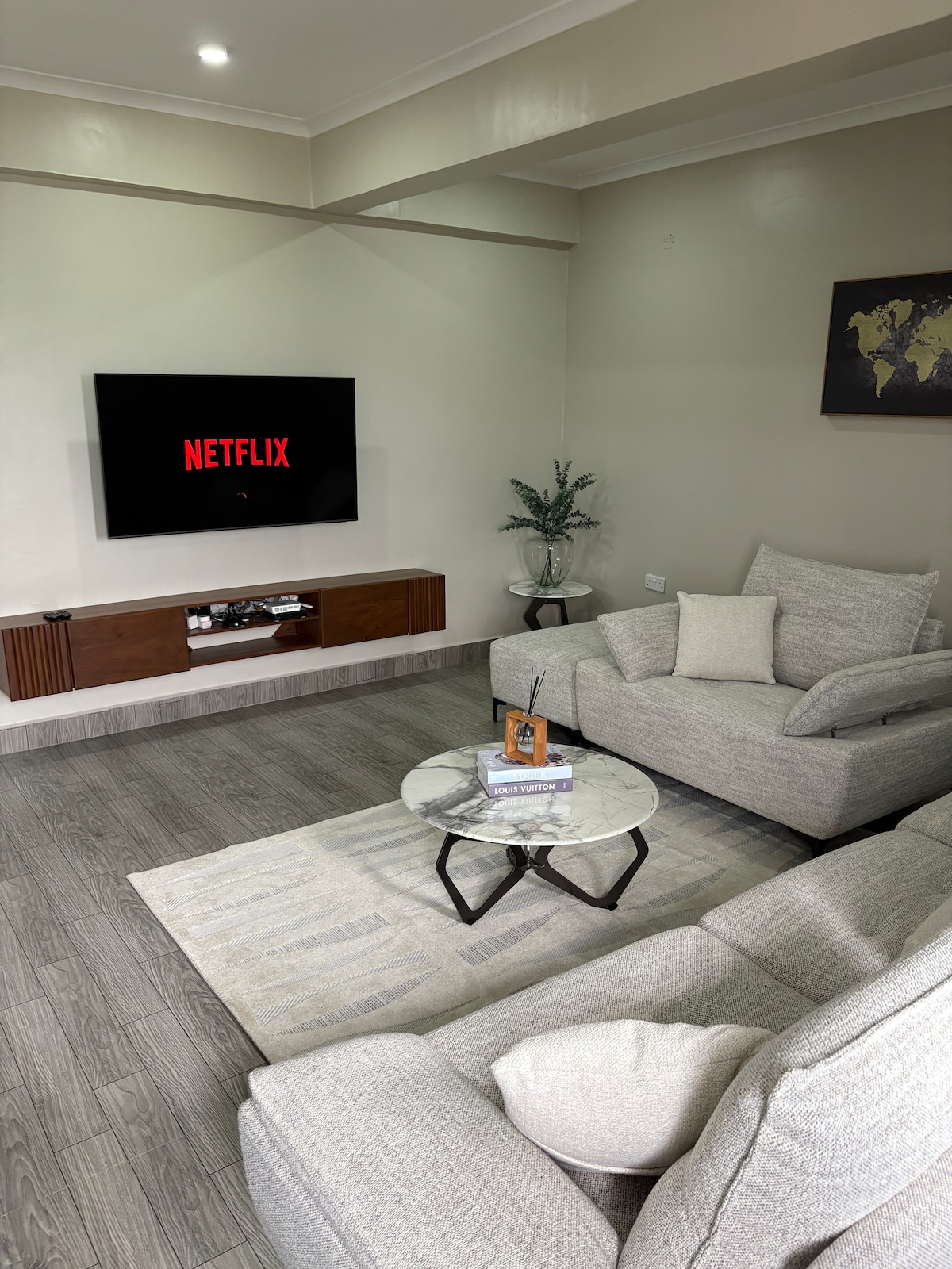 Venez profiter de la villa de luxe Ubalozi pour plus de confort avec des designs modernes sophistiqués. Profitez de lits et de canapés confortables avec une sensation de confort ultime. > Regardez des émissions et des films sur une télévision 75" avec Netflix gratuit, YouTube, Amazon Prime, Showmax et Live Sports > Découvrez le Wi-Fi haut débit et le système audio haut de gamme compatible Bluetooth. > À seulement 10 minutes du centre-ville, des plages, du ferry de Zanzibar et de la vie nocturne animée. > Assez de place de parking, jardin arrière adapté au barbecue. Profitez du confort et du luxe avec nous.