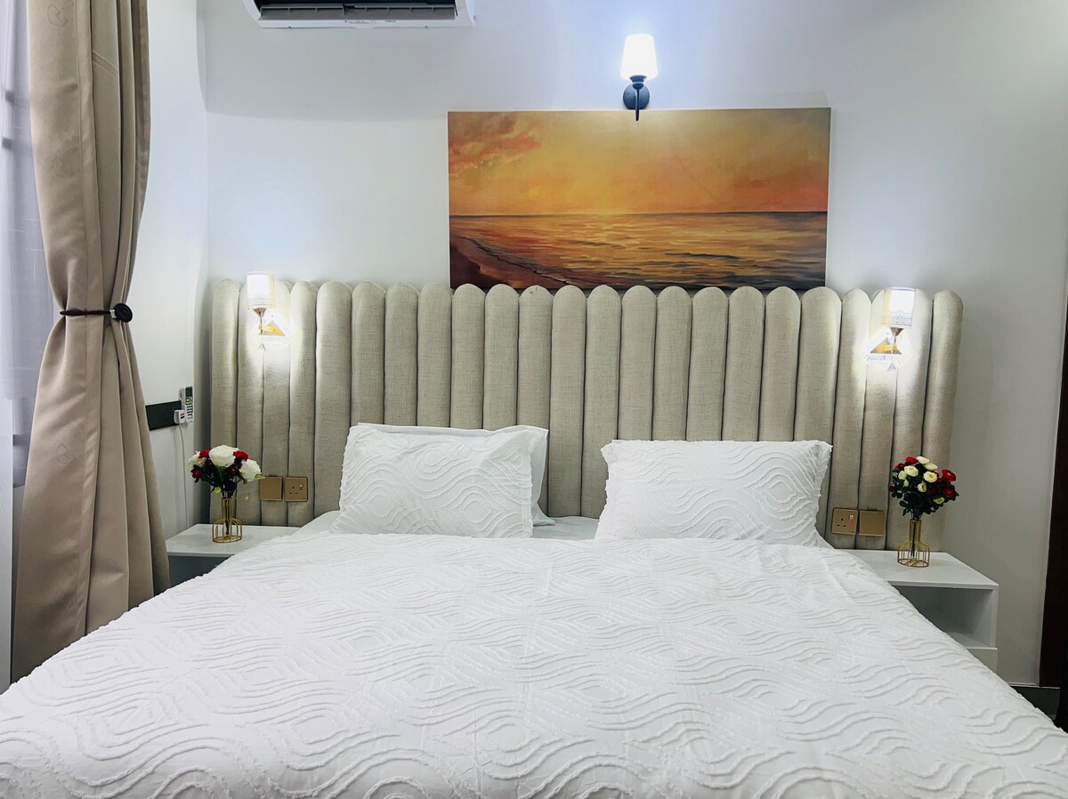 Notre appartement d'une chambre offre un espace propre, moderne et paisible conçu pour que vous vous sentiez chez vous. Que vous soyez à Dar pour les affaires, les voyages ou le repos, vous profiterez d'un salon confortable, d'une kitchenette entièrement équipée, d'un lit king size confortable et d'une salle de bain privée. L'espace est idéal pour les voyageurs en solo, les couples ou les séjours d'affaires de courte durée. Nous avons également ajouté des touches réfléchies comme un éclairage doux, une décoration chaleureuse et une connexion Wi-Fi rapide pour rendre votre séjour aussi relaxant que possible.