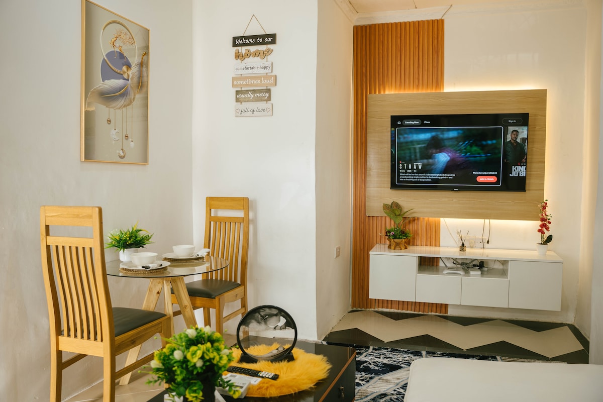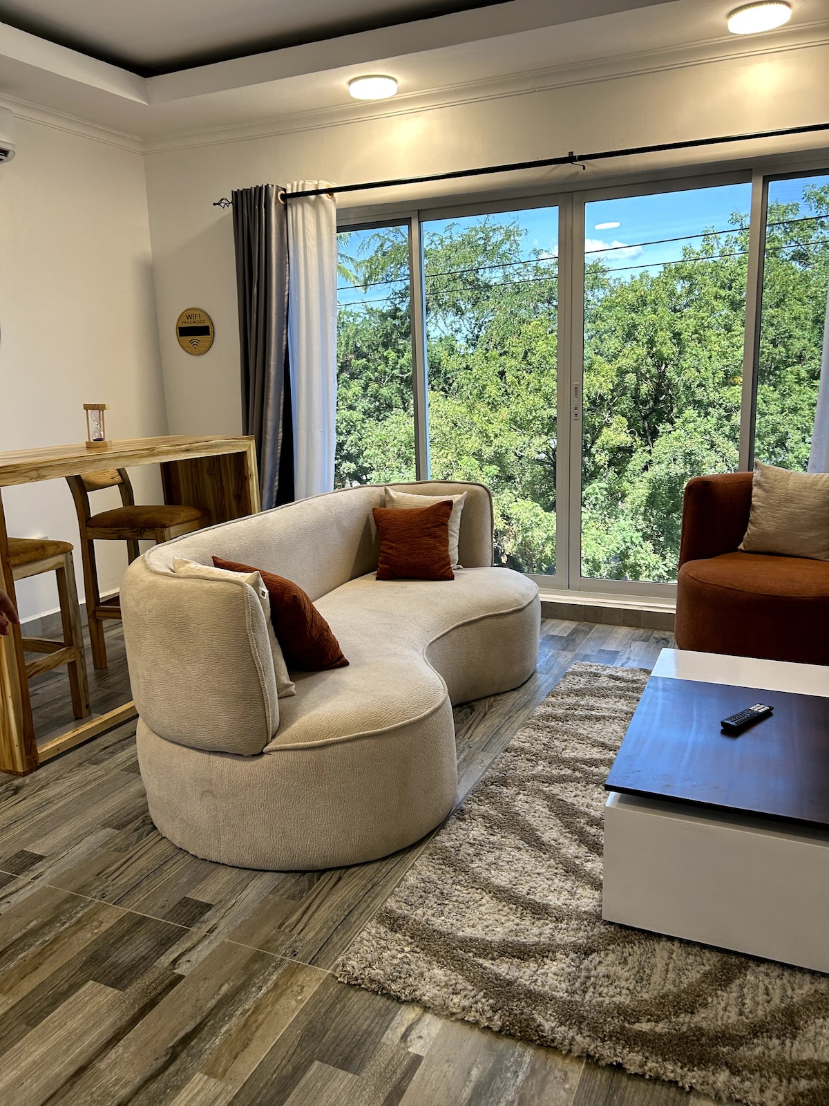 Bienvenue dans notre appartement moderne 1BHK, votre endroit idéal pour le confort et la détente près du centre-ville de Dar es Salaam. Idéal pour les affaires, les loisirs ou une escapade de vacances. Profitez d'un accès facile aux bureaux, aux lieux de loisirs et aux restaurants, d'un salon confortable et meublé, d'une connexion Wi-Fi rapide, d'une cuisine entièrement équipée et d'un accès direct à la route goudronnée pour faciliter les transports.
