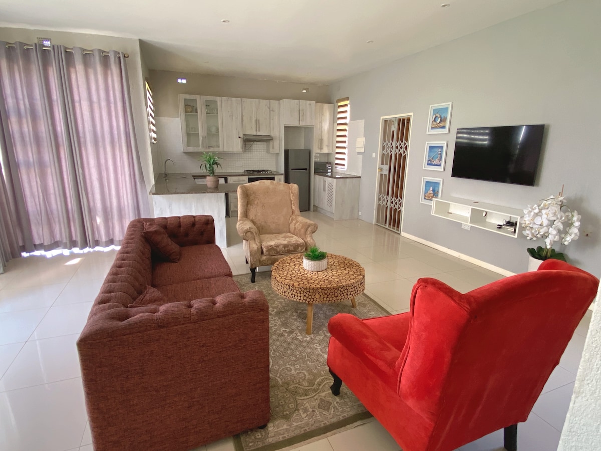 Logement élégant et sécurisé à Greystone Park, idéal pour les séjours d'affaires ou en famille. Un favori des voyageurs avec une chambre principale spacieuse, un salon confortable et un bureau convertible en deuxième chambre. Profitez d'une connexion Wi-Fi haut débit, d'une alimentation de secours, d'une cuisine entièrement équipée, d'un jardin privé, d'un espace de travail dédié, d'un service d'entretien ménager et d'un parking sécurisé. À seulement 7 à 10 minutes de Borrowdale Village pour le shopping haut de gamme, les restaurants et les divertissements. Parfait pour les séjours courte ou longue durée avec confort, intimité et commodité.