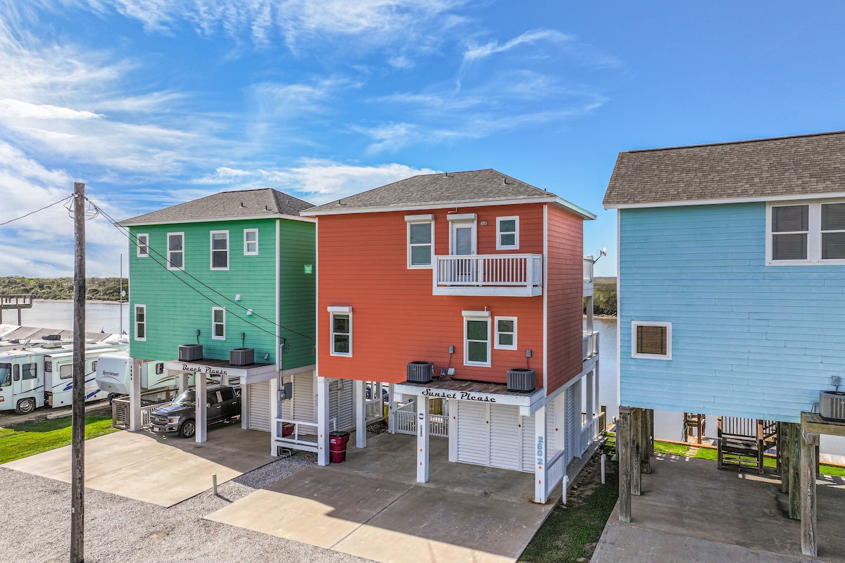 Jusqu'à 6 personnes peuvent dormir dans cette belle maison super propre de 2 chambres, 2,5 salles de bain, à seulement dix pas de la rivière CO et à 3 minutes en voiture de la plage de Matagorda. Apportez vos tongs, votre serviette de plage et votre livre préféré pour vous détendre sur l'une des 3 terrasses... ou apportez votre équipement de pêche et attrapez de gros poissons juste à côté du quai. Vous pouvez même nettoyer votre poisson juste là et le griller sur le barbecue ! Apportez votre bateau ou votre kayak et éloignez-vous du quai. Créez de beaux souvenirs avec toute la famille dans cette ville balnéaire au rythme lent !