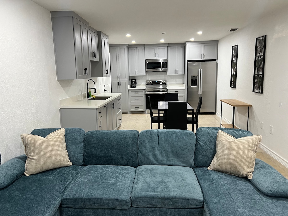 Bienvenue dans cet appartement 1BR récemment rénové avec des meubles neufs, offrant confort et commodité à Brownsville. À quelques pas du pont international, du centre-ville et juste en face de l'université, c'est l'endroit idéal pour les voyageurs en solo ou les couples. Profitez d'une vue imprenable sur le lac, d'une piscine rafraîchissante et d'une laverie sur place. L'appartement dispose d'une chambre spacieuse, d'une cuisine entièrement équipée et d'un salon lumineux pour se détendre. Restez connecté avec une connexion Wi-Fi haut débit
