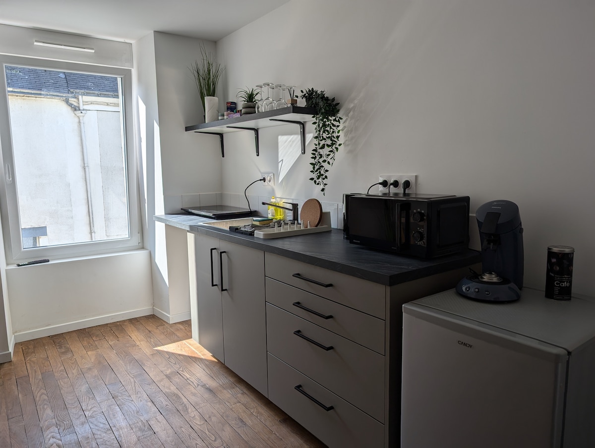 Studio neuf indépendant attenant à une maison, cartier résidentielle en centre bourg. Ce logement paisible offre un séjour détente pour toute la famille. Équipé avec les moindres détails afin que vous puissiez passer un agréable séjour que sa soit un déplacement professionnel ou vacances. un parking devant est réservé, wifi en fibre et télé by Orange. une boîte à clé qui vous permet d'accéder en toute autonomie.