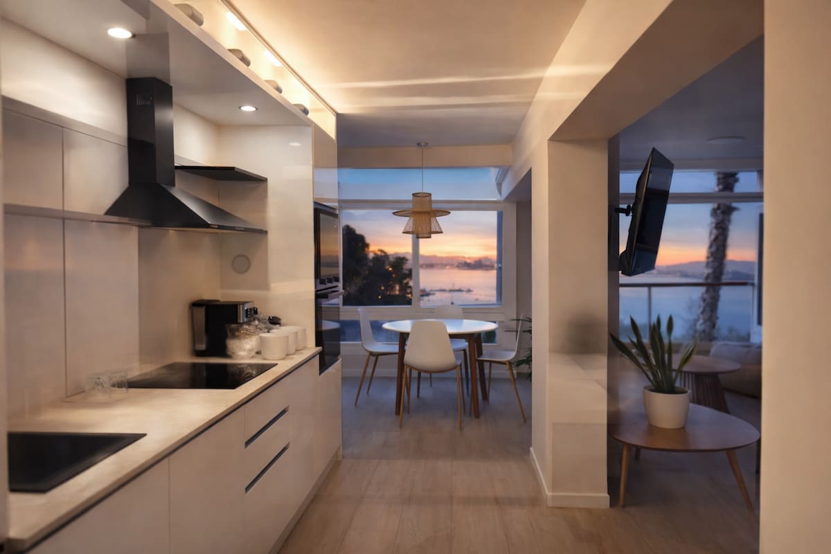 Profitez de la simplicité de cet hébergement calme et central en bord de mer, avec des vues incroyables, car il est situé au dernier étage du bâtiment. Son emplacement vous permet de profiter de vos vacances sans avoir à prendre la voiture, car il est situé sur la même promenade. À moins de 300 mètres, vous trouverez une épicerie, plusieurs restaurants et des aires de jeux pour enfants. En vous promenant, vous pourrez rejoindre le port de plaisance où vous trouverez des restaurants, des glaciers et des loisirs.