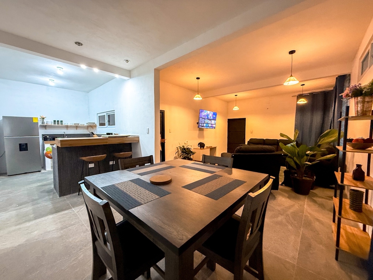 Maison entièrement équipée et dans un quartier résidentiel privé, donc LES FÊTES SONT INTERDITES. Sécurité 24 h/24. Entrée autonome avec code. Maison et piscine désinfectées avant votre arrivée ! À 7 min/5 km de Xetulul Xocomil Dinopark. Air conditionné, Wi-Fi, piscine avec vue à 360° sur le toit, barbecue avec vue sur les volcans. 7 minutes From Recreational Parks, A/C, Wi-fi, Rooftop 360° View Pool, Grill, PARTIES NOT ALLOWED Sécurité 24 h/24, Self Check in/Out, désinfecté !