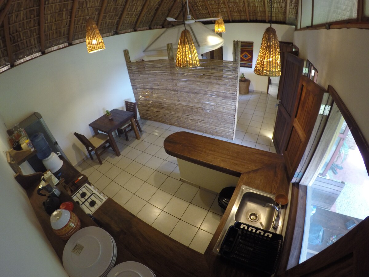 Découvrez votre escapade idéale à Mazunte à la Casa Atma -Ether, un appartement lumineux d'une chambre avec un toit privé offrant une vue spectaculaire et à couper le souffle sur Mazunte. Profitez du lever du soleil et de la vue sur l'océan depuis le hamac ou le salon. L'appartement dispose d'un lit King Size, d'un canapé-lit et d'une cuisine entièrement équipée avec un îlot. L'emplacement est central, à deux plages, et l'entrée de Punta Cometa se trouve en bas de la rue. Comprend un parking gratuit, le wifi et l'eau chaude.