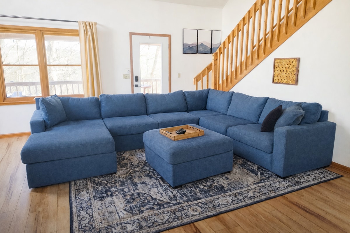 Bienvenue dans votre cabane entièrement privée, où vous aurez une sérénité totale, entourée uniquement de la forêt de Blue Ridge. Choisissez votre plaisir : la salle de jeux au sous-sol, les sièges et les équipements extérieurs sur les grandes terrasses arrière, les lits King Size confortables, le magnifique intérieur moderne du chalet, ou aventurez-vous dans les bois pour trouver notre foyer privé le long du ruisseau apaisant qui passe juste à côté de la propriété. Ce seront des vacances que vous ne voudrez plus jamais quitter !