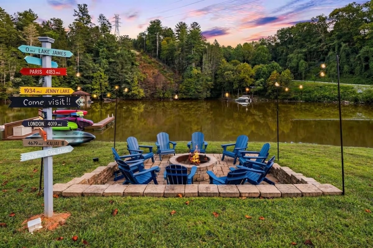 Réveillez-vous avec une vue sur les montagnes Blue Ridge depuis une superbe retraite en forme de A. Il s'agit d'une location de vacances personnalisée de 4 chambres, la mieux équipée près du lac James. Passez vos matinées sur l'eau ou sur le terrain de golf, puis détendez-vous au coin du feu ou dans la salle de jeux avec une télévision de 70 pouces. Profitez d'une salle de sport complète, d'une chambre avec lits superposés et d'une cuisine spacieuse. À 14 minutes du parcours de golf Marion Lake Club, à 5 minutes de Bear Creek Marina et à 10 minutes du parc d'État de Lake James. Parfait pour les familles et les escapades en groupe.