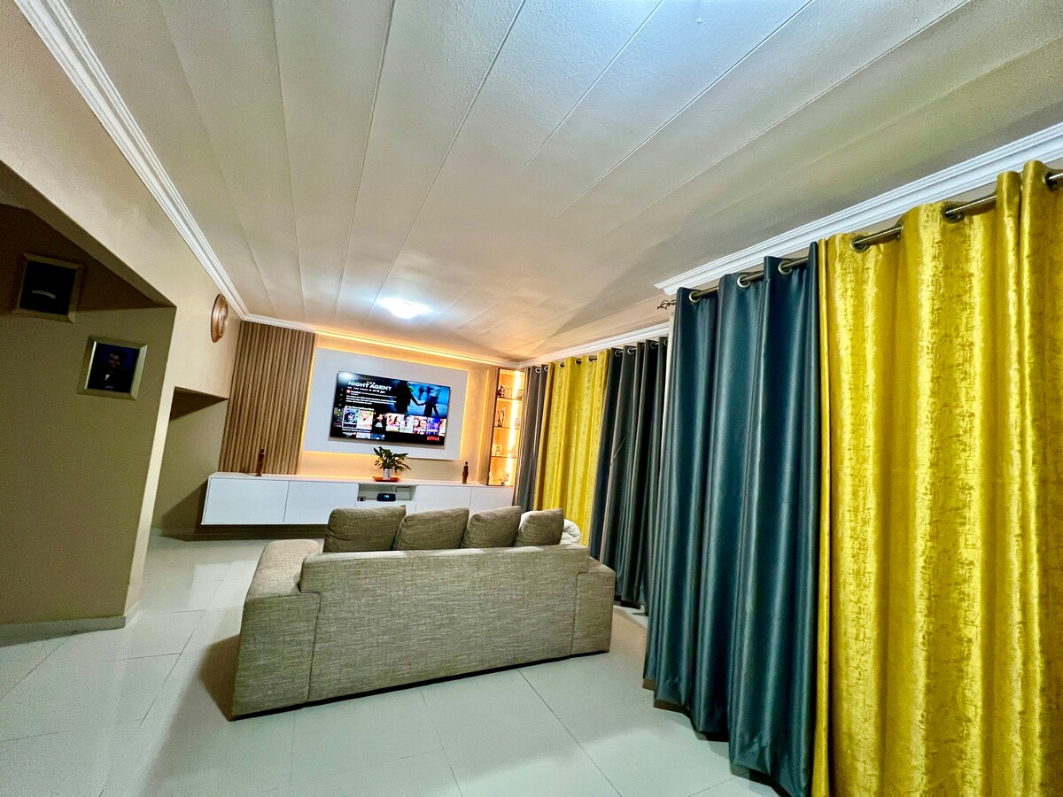 Ce logement haut de gamme est parfait pour une maison loin de chez soi. Fermez à clé et partez, banlieue sécurisée, située dans un magnifique jardin. Facile d'accès aux autoroutes. Lit king size confortable pour de bonnes nuits de sommeil. Convient pour la location courte ou longue durée, les vacances, les fêtes ou les voyages d'affaires. Servis tous les jours sauf le dimanche et jours fériés ! Le logement est équipé d'une aire de stationnement. Lumières, télévision et WiFi disponibles pendant le délestage ! La propriété dispose d'un trou de forage avec de l'eau purifiée. Le logement dispose de la climatisation.