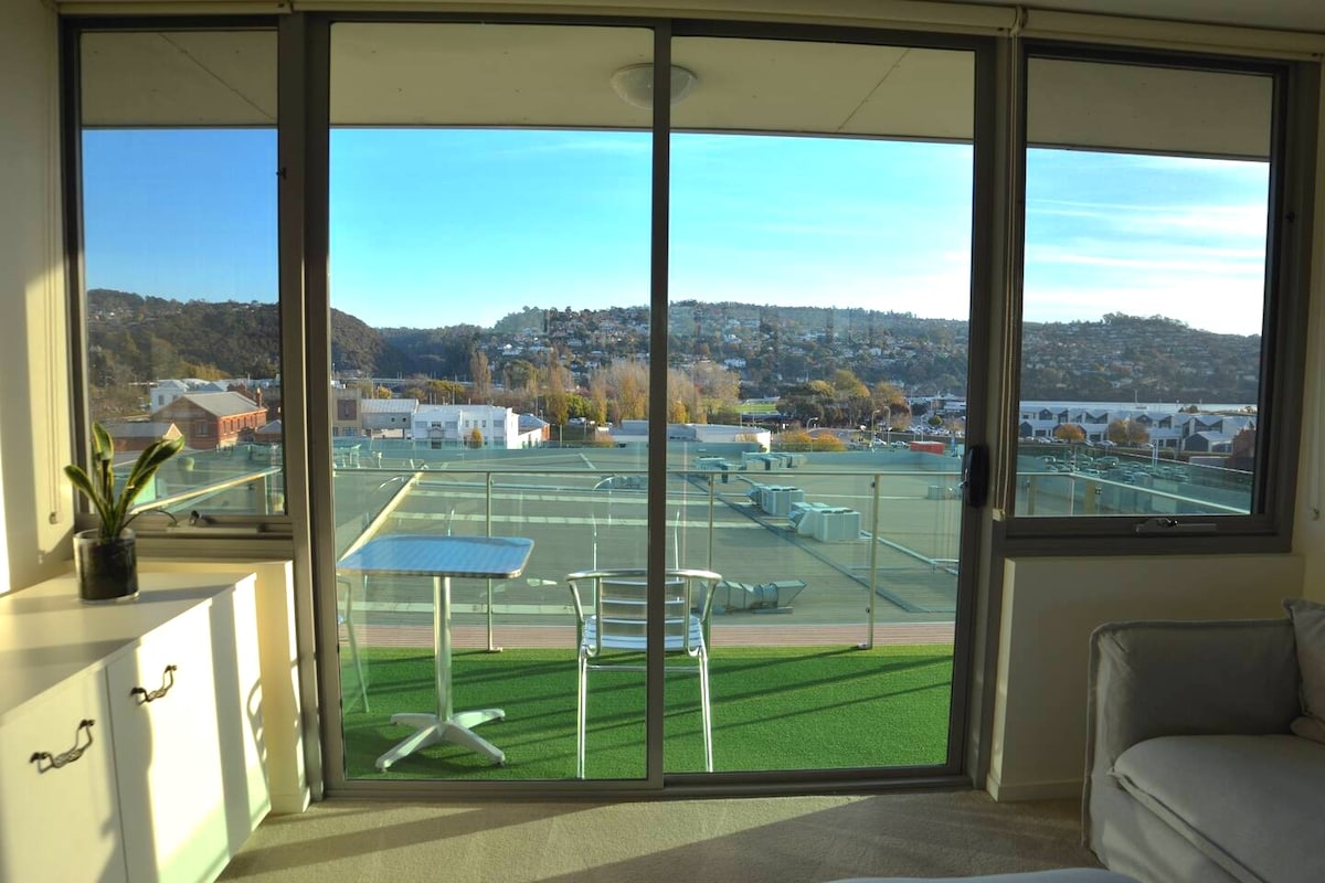 Une maison de ville élégante et ensoleillée à quelques minutes en voiture du centre-ville. Une vue imprenable sur Launceston et la rivière Tamar peut être vue à travers la cime des arbres et au loin des pentes de montagnes boisées. De l'autre côté de la route, un sentier mène à Cataract Gorge. La bibliothèque élégante et bien approvisionnée dispose d'un canapé confortable et d'un espace de travail dédié avec bureau et chaise. Une terrasse ensoleillée vous attend. Une connexion Wi-Fi rapide et une télévision connectée avec des services de streaming sont disponibles. Art éclectique et original partout.