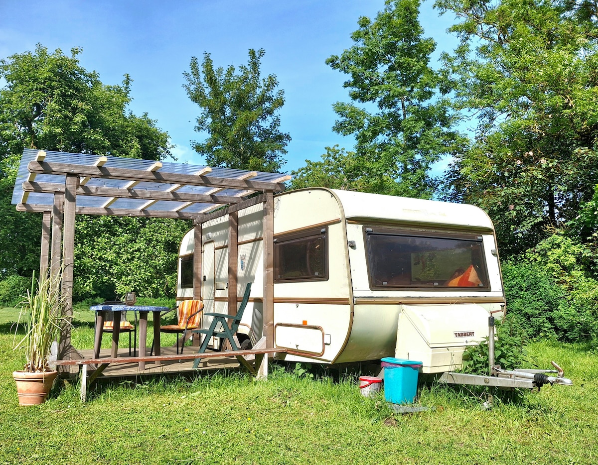 Nous offrons notre caravane à tous les clients qui aiment le camping. La plage est à 3 km, lescommerces ainsi qu'une pharmacie sont à 1 km. Deux hôtes de bonne humeur avec 2 chiens et beaucoup de nature vous attendent. Le nouveau lavoir a été construit en 2021. (L'eau chaude passe par un distributeur automatique, les pièces peuvent être achetées chez nous). Le roulotte est une roulotte fumeur. On peut aussi prendre des boissons dans notre « coin fumeur » avec un jeu de fléchettes confortable.