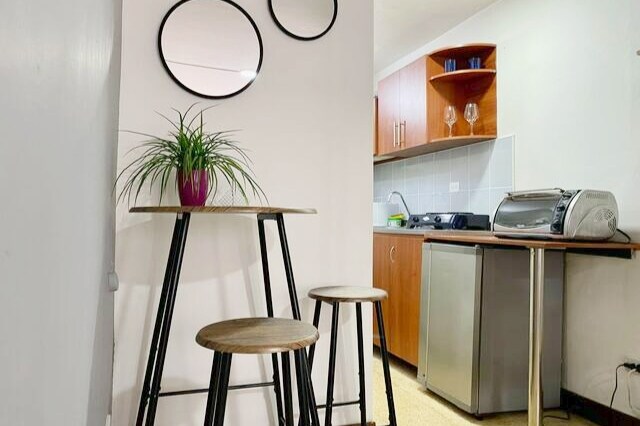 Profitez de votre séjour à Medellín dans ce studio nomade moderne et confortable, un duplex de 22 m² conçu pour les voyageurs à la recherche d'un excellent emplacement à El Poblado, de fonctionnalités et d'une atmosphère chaleureuse. Le logement dispose d'une chambre avec un lit queen size, d'une salle de bain élégante, d'une cuisine entièrement équipée et d'un petit patio parfait pour la détente. De plus, il offre un espace de travail dédié idéal pour les nomades numériques qui ont besoin de rester connectés.