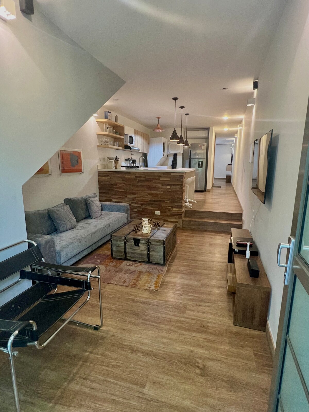 Grands espaces, balcon, salle à manger, cuisine, deux chambres, chacune avec lit double, bonne ventilation et éclairage, une grande salle de bains, le tout avec une touche chaleureuse, qui vous fera sentir comme chez vous. L'emplacement est stratégique, vous serez à 8 minutes à pied de la station de métro Envigado et du centre commercial Viva, à 10 minutes en transports en commun du village et à 15 minutes en métro du centre de Medellín.